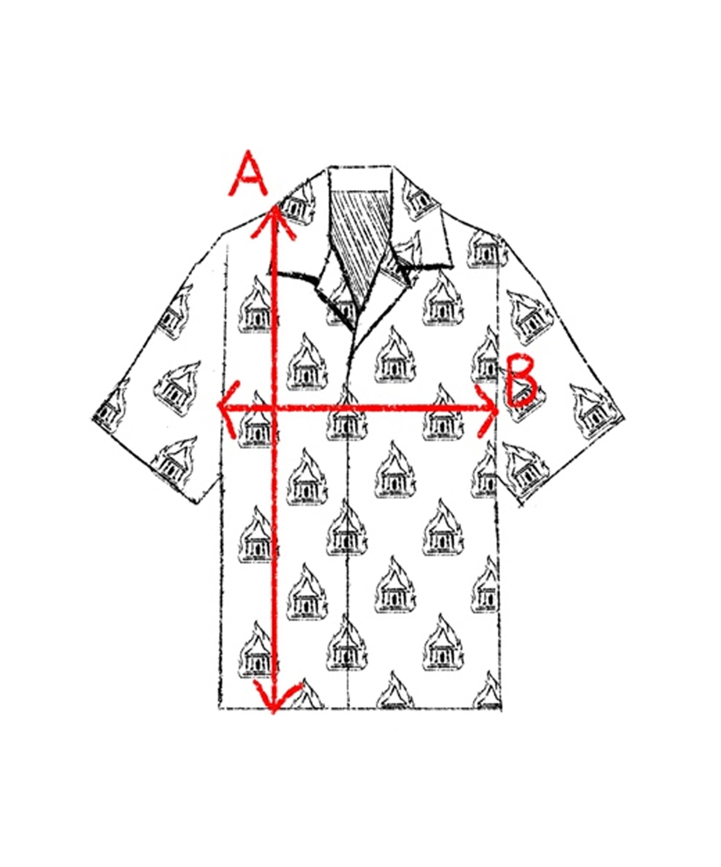 Camisa unisex de manga corta con cuello cubano en tela satinada con estampado digital de los templos en llamas, original de T.O.I