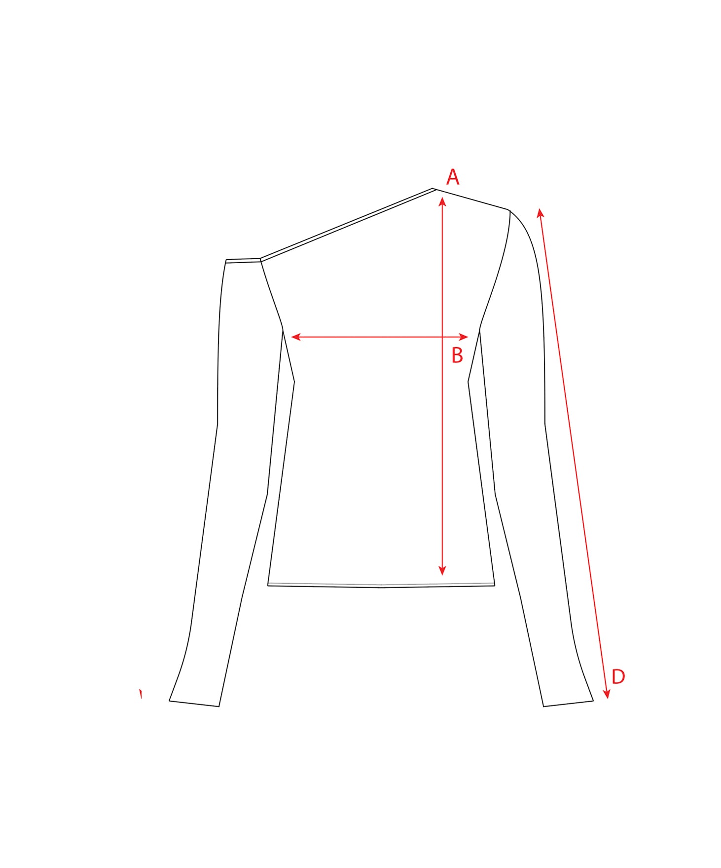 Camiseta de manga larga asimétrica para mujer en tejido rib suave, con escote asimétrico en diagonal y dobladillos rectos al corte de la tela.