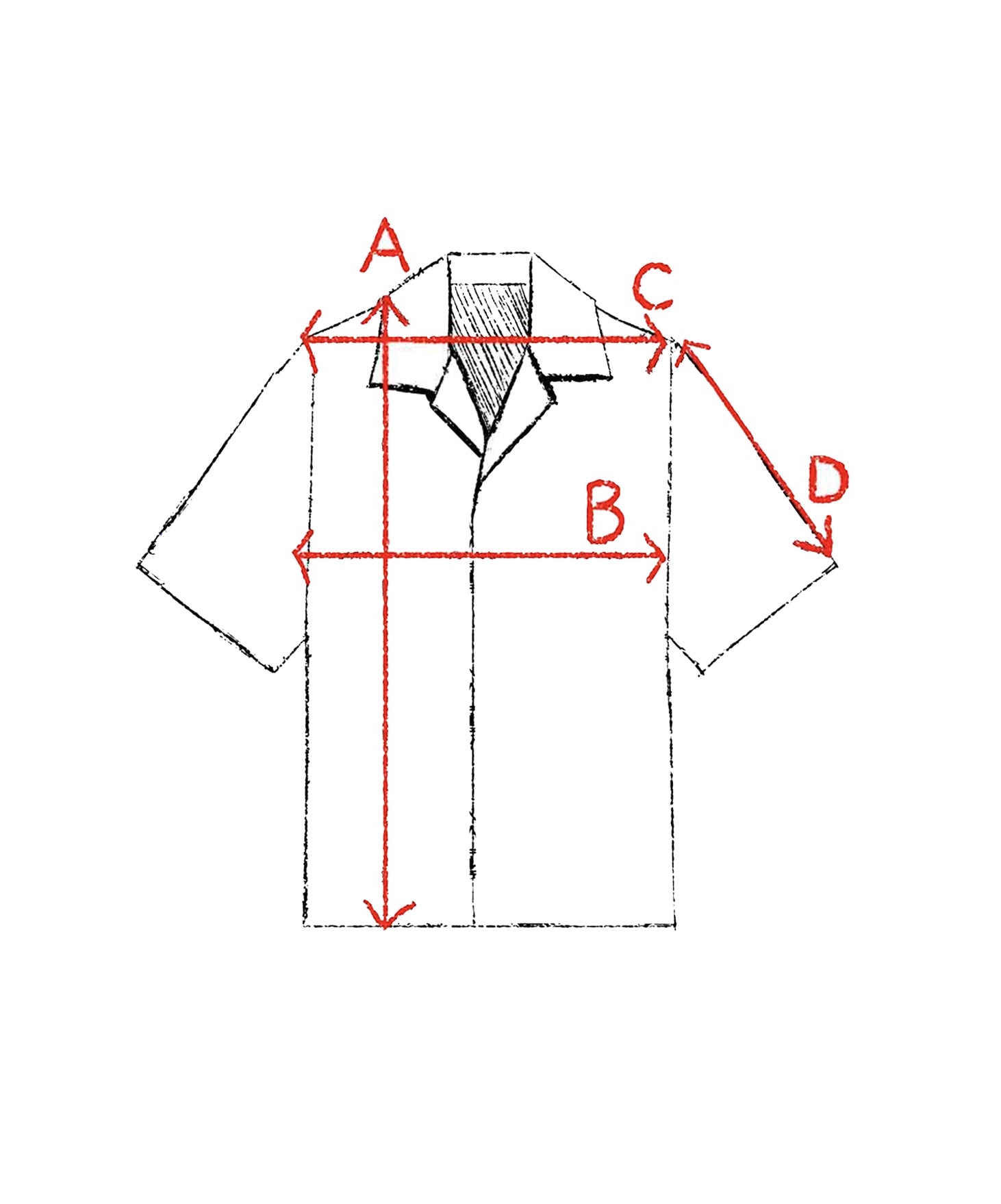 A(largo) B(Pecho) C(Hombros) D(Mangas)